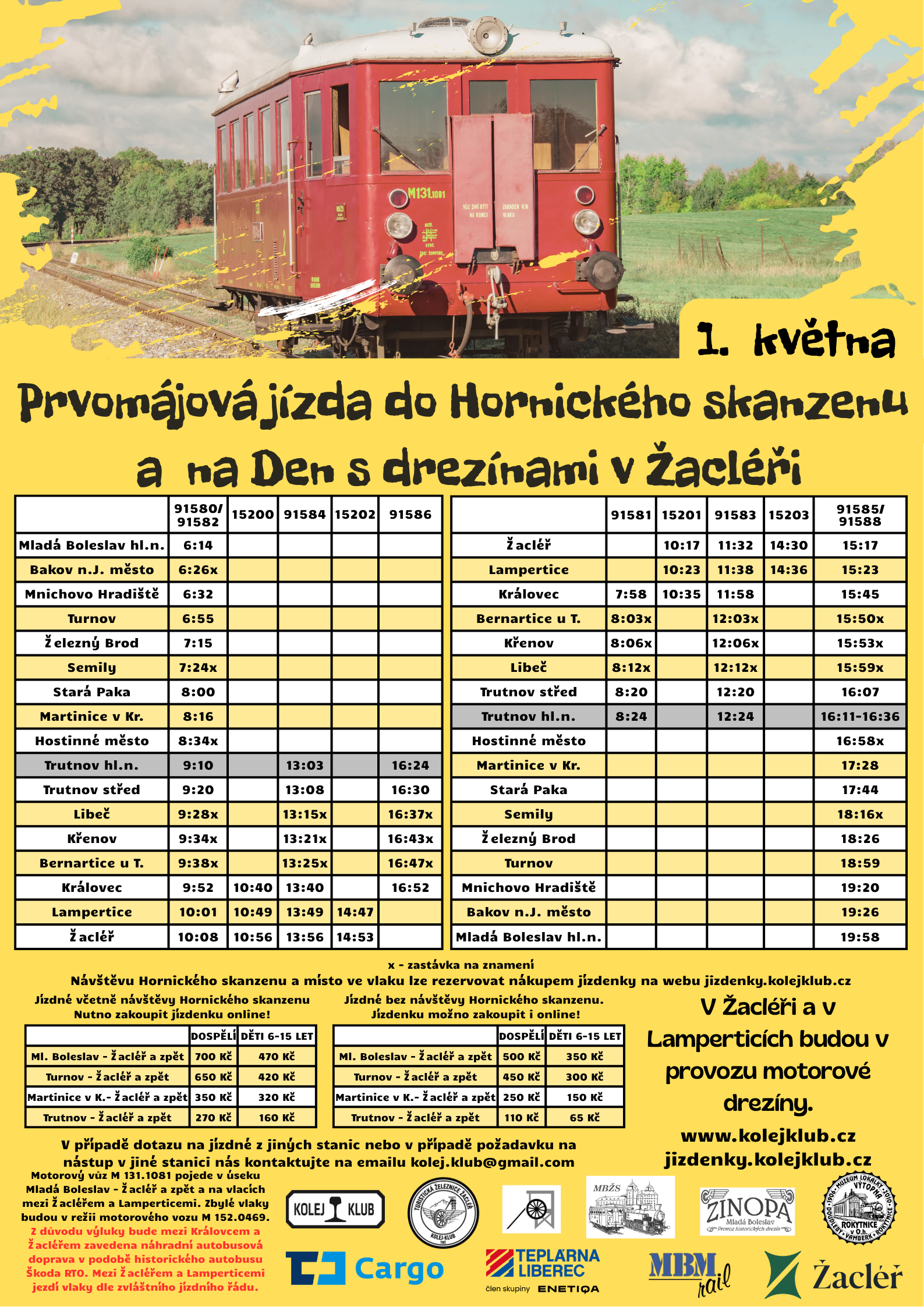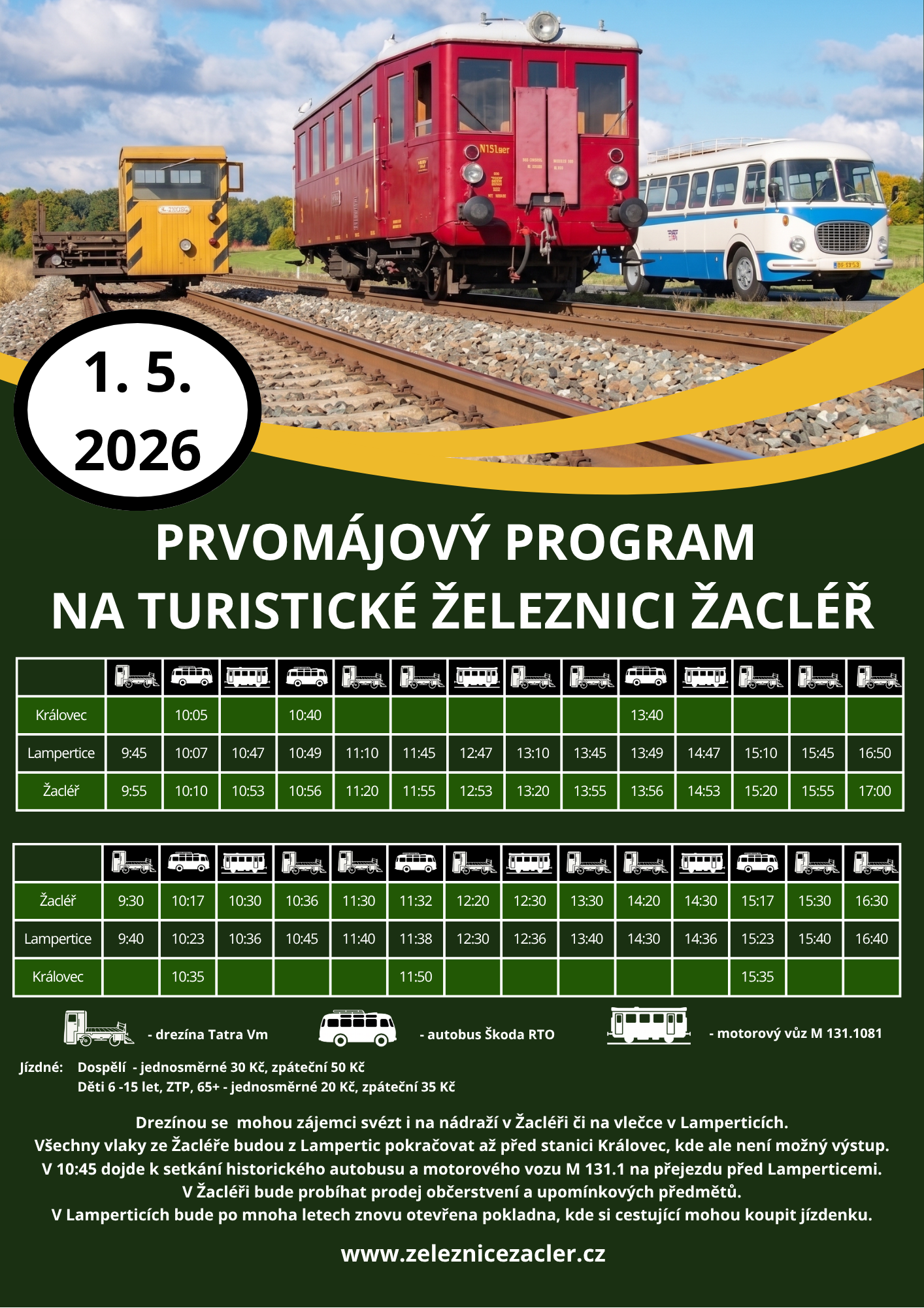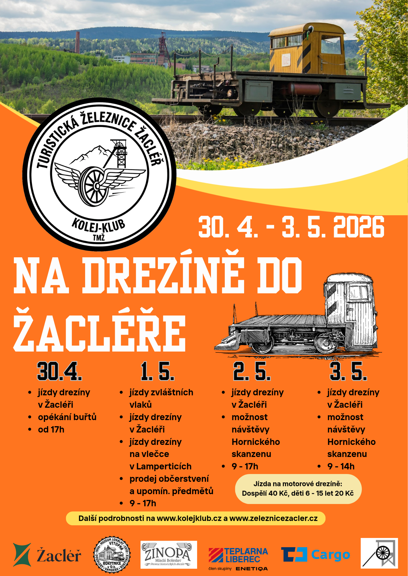 PLAKÁTPROGRAM ŽACLÉŔPŘEDPRODEJ JÍZDENEKNA DREZÍNĚ DO ŽACLÉŘE
